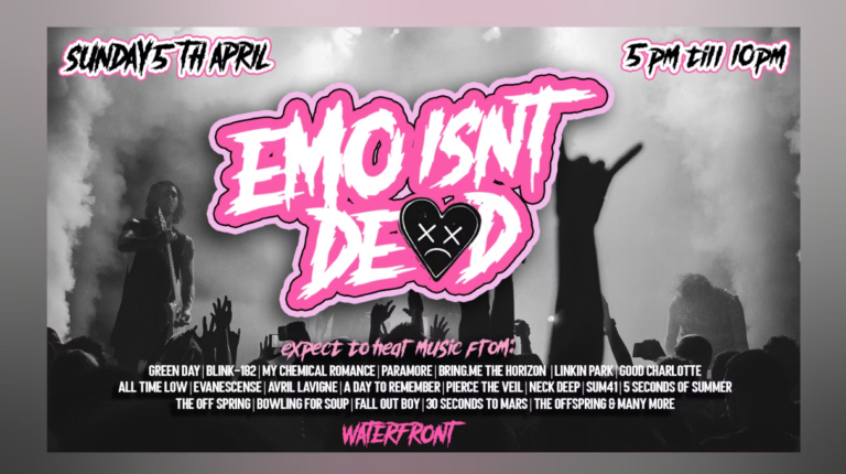 This isn’t a background DJ set or a quiet trip down memory lane — this is a full-scale emo takeover. We’re dragging the Myspace era of fringe cuts, eyeliner and band tees straight into 2026 and turning the room into absolute scenes from the moment the doors open.